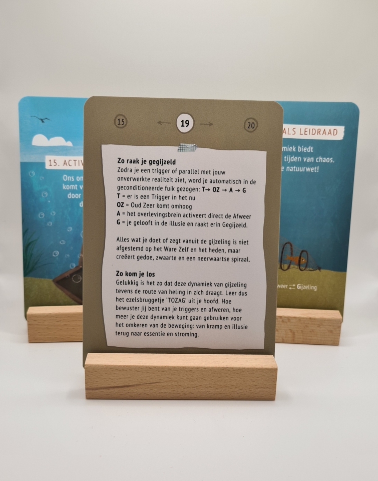Via dit kaartendeck wordt wezenlijke informatie op het gebied van triggers, overlevingspatronen, oud zeer en de psychologie van innerlijke vrijheid, omgezet in heldere beelden en toegankelijke richtingaanwijzers en tips.